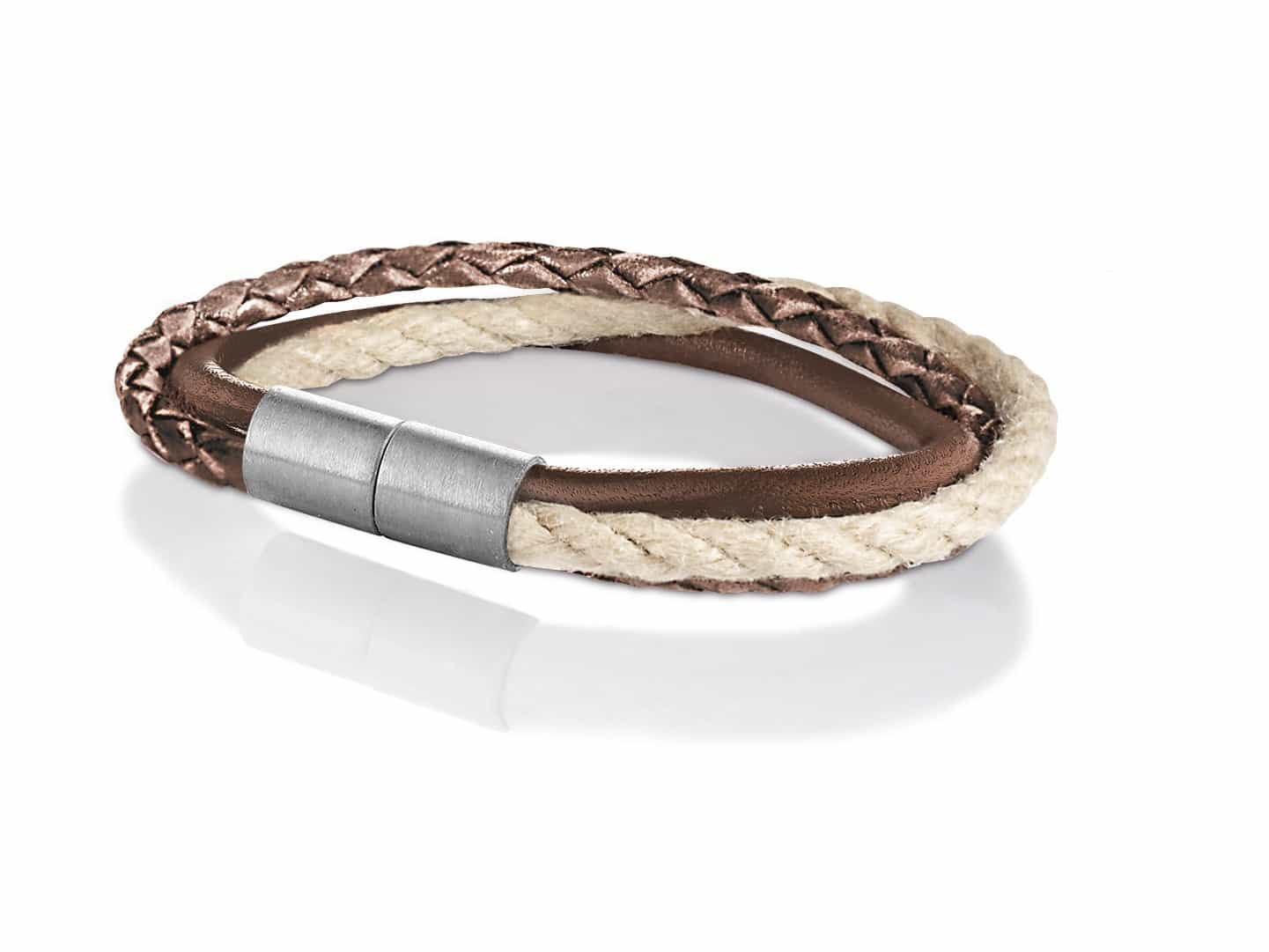 Armband Seemannsgarn & Leder mit Magnet in Edelstahl mit Skyline & Köln