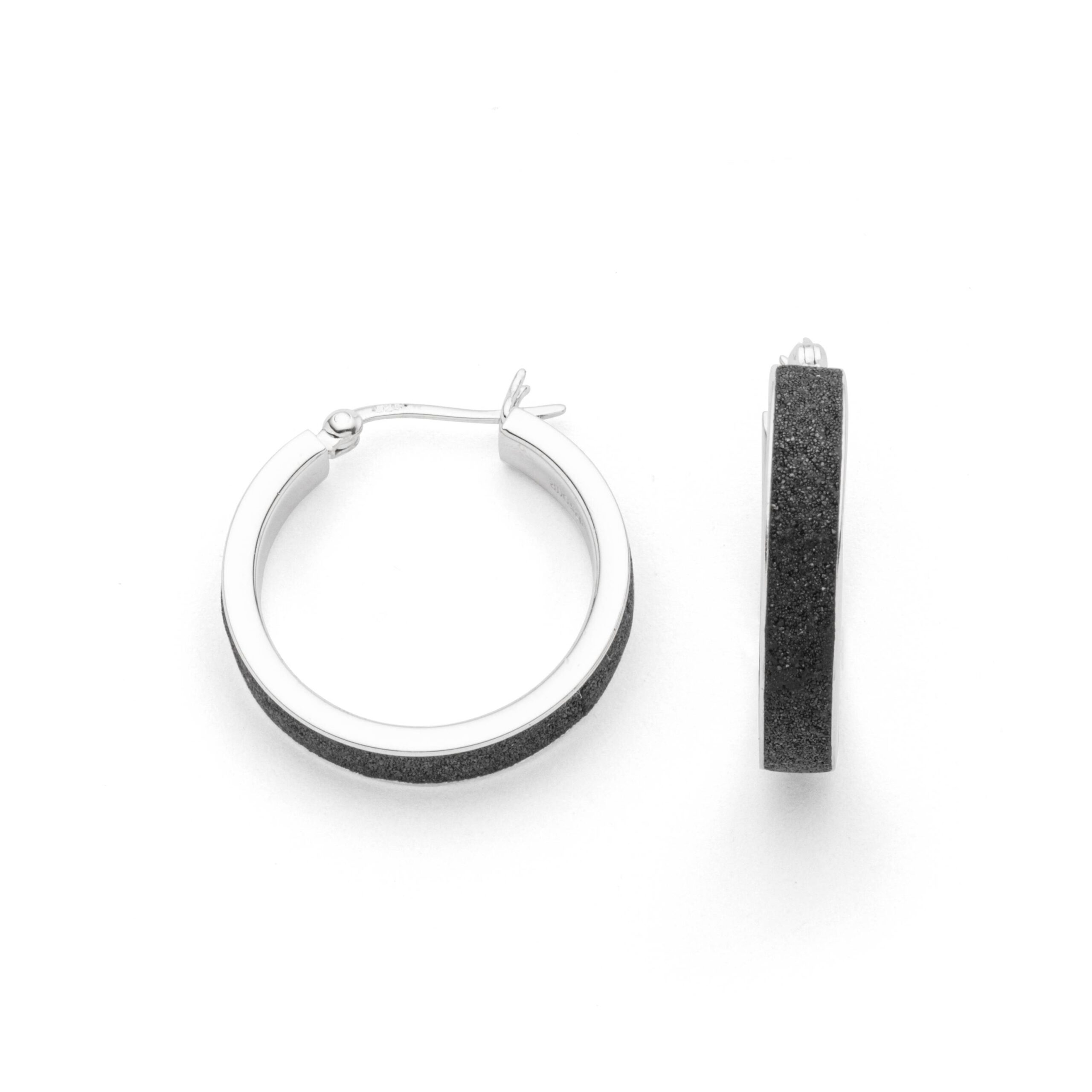 Creole rund 25,5 mm gefüllt mit Lavasand, gefaßt in rhodiniertem 925er Sterlingsilber