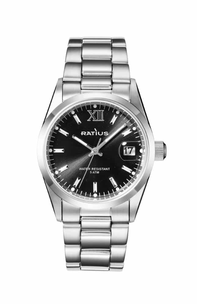 Damen & Herrenarmbanduhr ( Unisex ) Ratius-Medium-Edelstahl-Datum