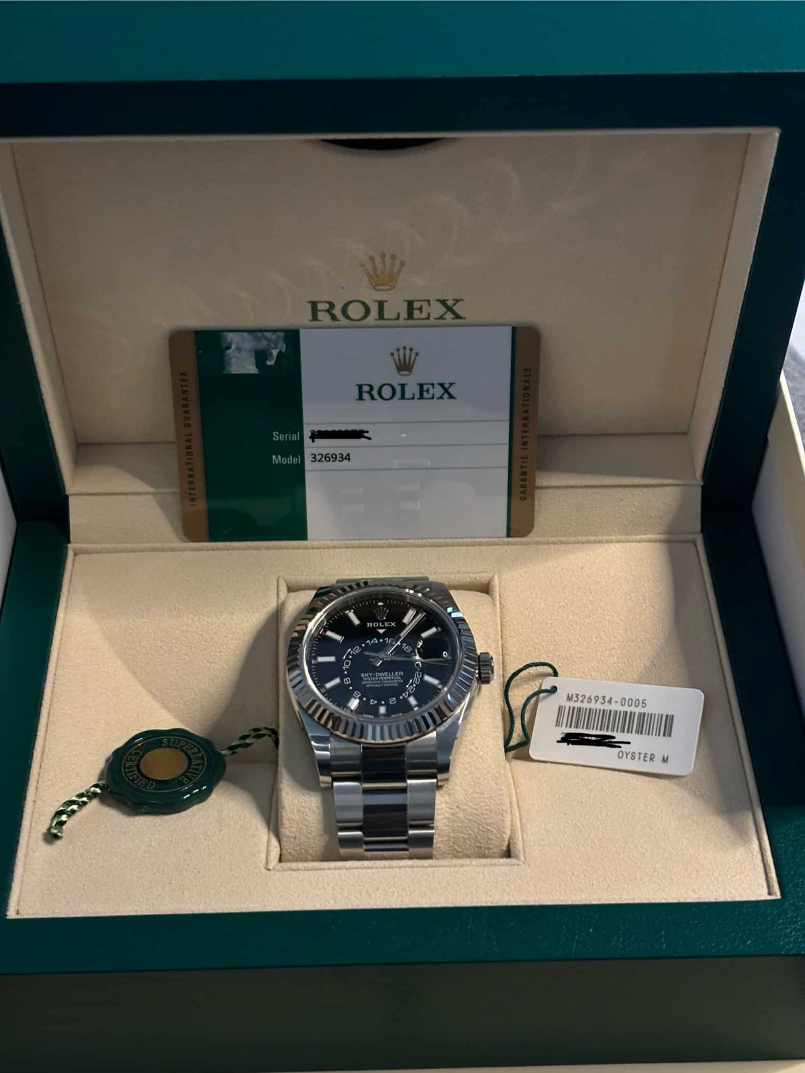Diese Rolex Sky Dweller liegt im Kundenauftrag in unserem Geschäft zum Verkauf.