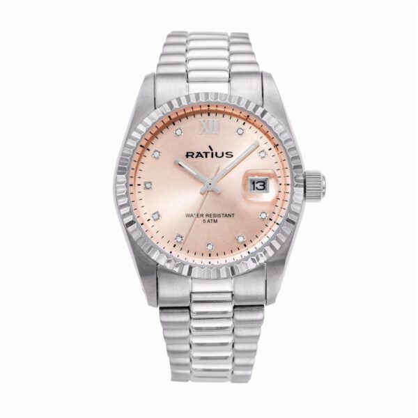 Ratius Armbanduhr Unisex Edelstahl Datum Schmucksteine